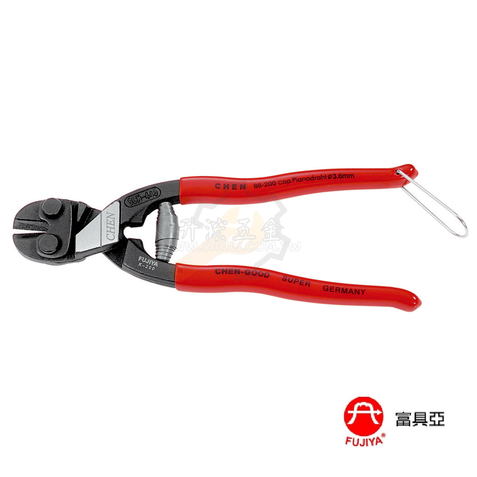 High Lever Cutting Pliers 全長: 205mm 包裝: 一小盒5支,一箱50支 ●運用於建築工程、水電工程、家庭園藝、DIY等。 ●採用高槓桿省力結構,可剪不鏽鋼線。 ●附彈簧及末端扣環,增加工作效率, 方便置於隨身工具袋,。 可剪材料 不鏽鋼線 鐵線 範圍 1.0mm 4.0mm